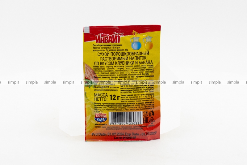 В нашем интернет-магазине Вы можете купить "Растворимый напиток ИНВАЙТ КЛУБНИКА-БАНАН 12г" по низкой оптовой цене с быстрой и удобной доставкой в г.Тюмень (Тюменская область). Мы предлагаем широкий ассортимент импортных сладостей и напитков от проверенных поставщиков и реализуем продукцию во всех регионах РФ.